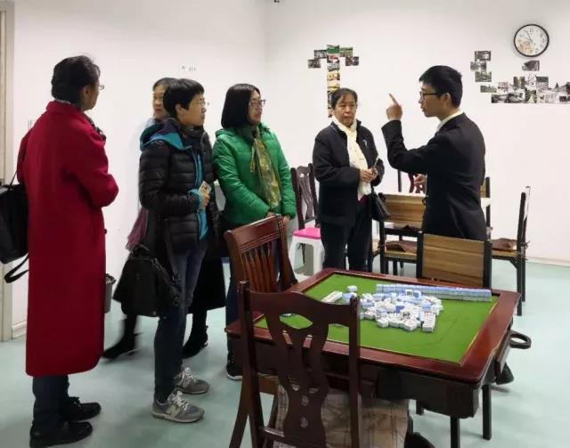 雅居园日间照料中心麻玉龙主任首先就照料中心的基本情况向黄书记一行进行了详细的介绍,并带领他们参观了活动室、棋牌室等。
