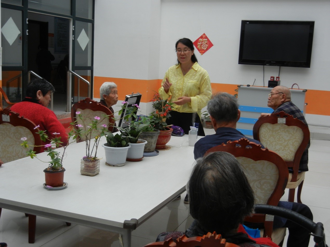 田蕾老师是智慧丽人俱乐部创始人、中国精油疗法康复理疗师、中国芳香疗法精英讲师。这次田蕾老师带来的芳香疗法是将植物芳香精油运用按摩的方法,经由嗅觉器官和皮肤的吸收,到达神经系统和血液循环,让精油作用于人体,具有杀菌、消炎、调节内分泌、改善机体代谢水平与免疫能力等作用,达到强身健体、改善精神状态的目的。精油是萃取多种具有“草药”性能的植物形成的,具有自然的芳香,整个活动现场气味芬芳,音乐舒缓,老人们精神放松,心情惬意。