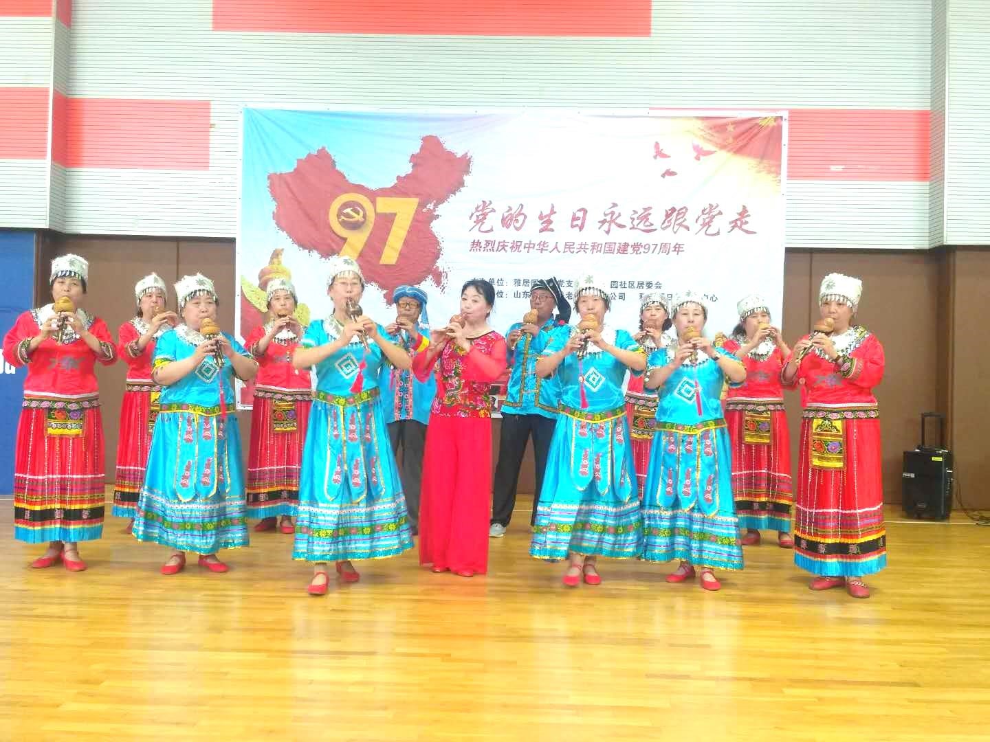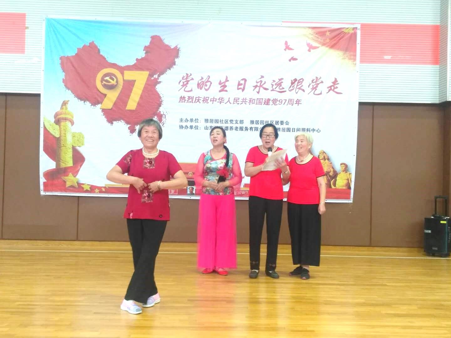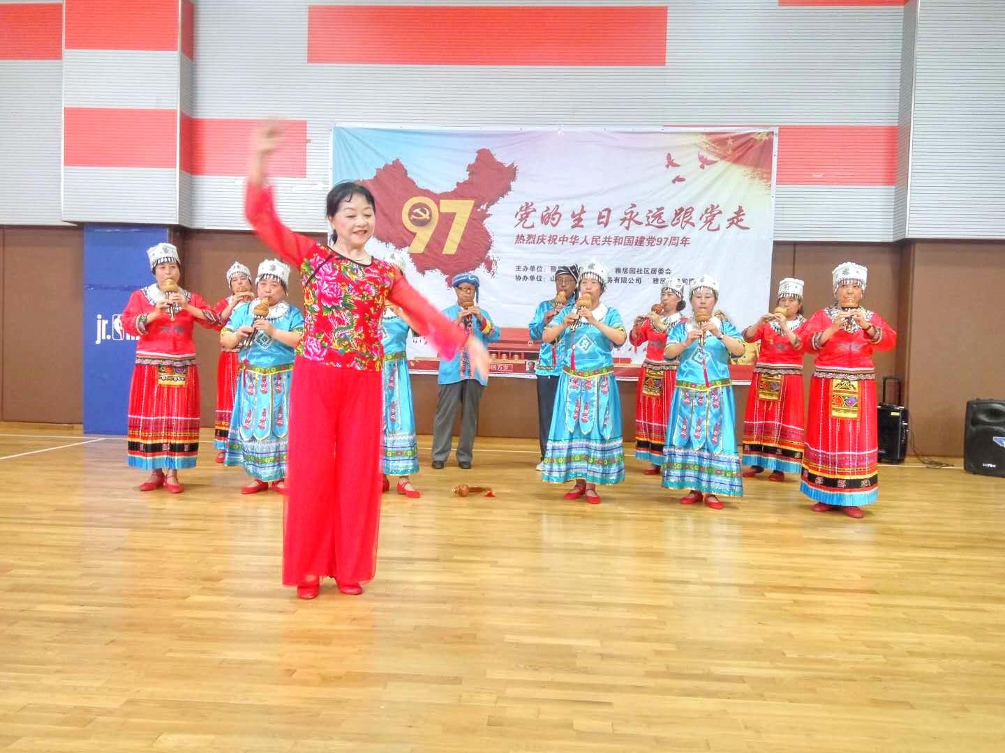 参加演出的有雅居园合唱团、雅居园舞蹈队、雅居园葫芦丝队和幼儿园的小朋友,十几名老党员和社区群众80多人欢聚一堂,共同庆祝党的97岁生日。