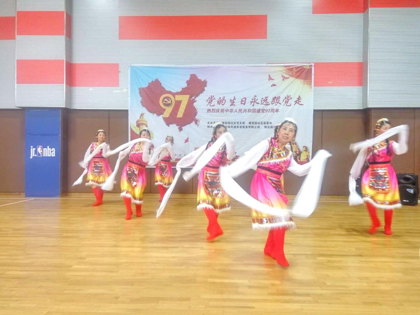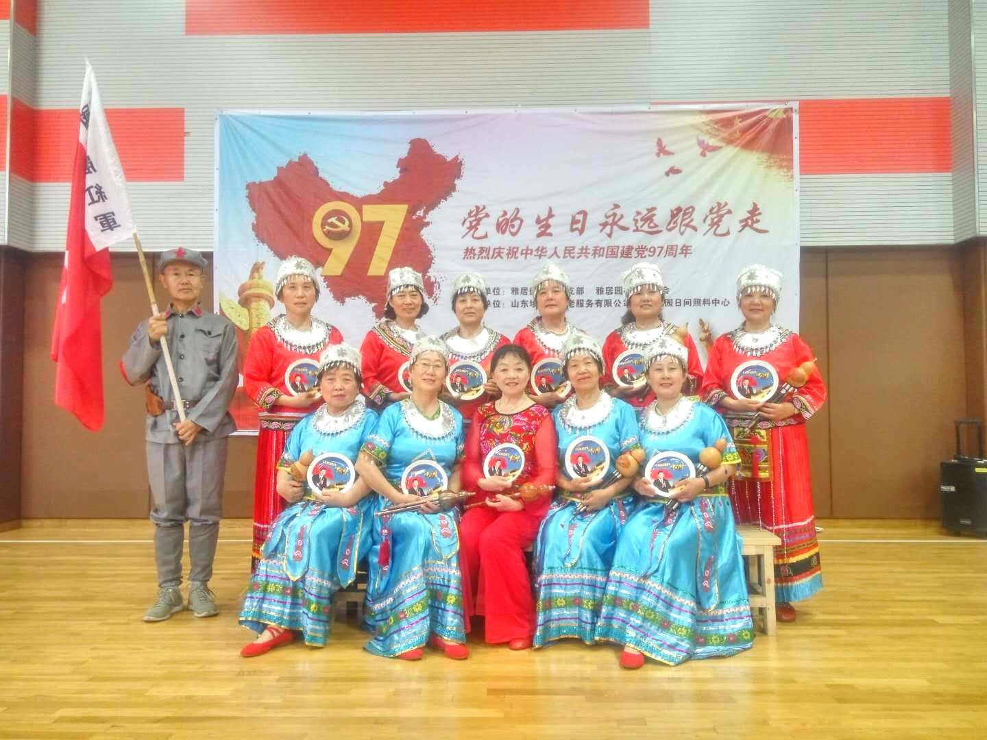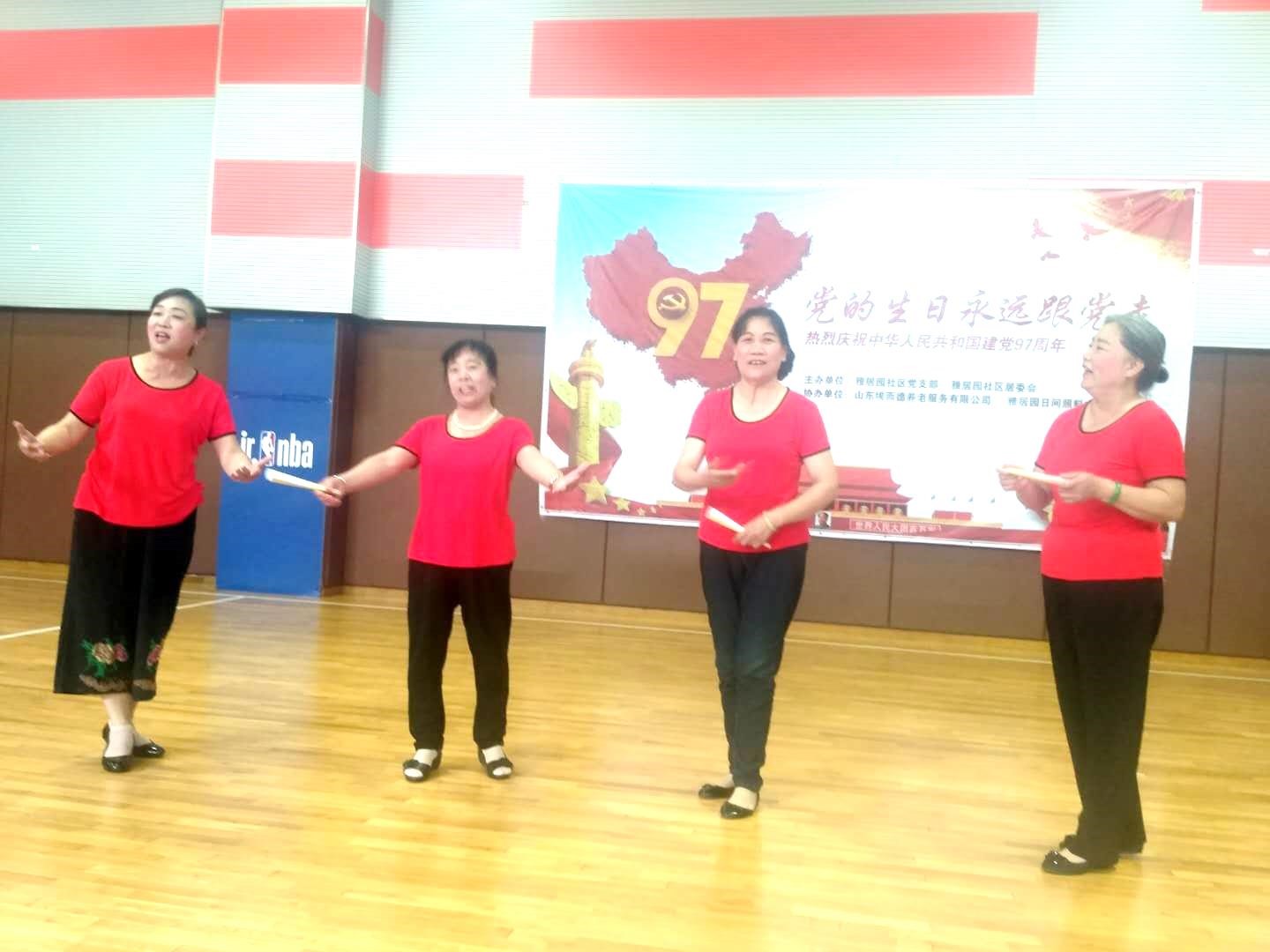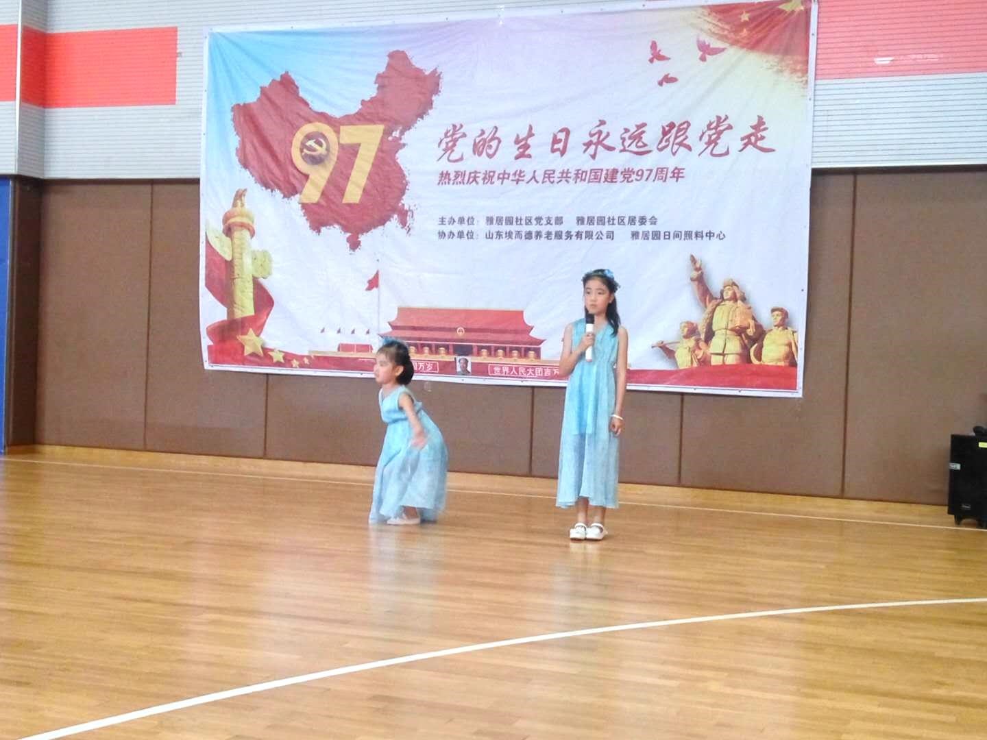 参加演出的有雅居园合唱团、雅居园舞蹈队、雅居园葫芦丝队和幼儿园的小朋友,十几名老党员和社区群众80多人欢聚一堂,共同庆祝党的97岁生日。