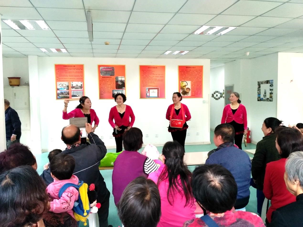 参与表演的都是社区里的老年人,他们能歌善舞,各展才艺,节目有合唱、有舞蹈、有葫芦丝、有诗朗诵、还有太极表演……真是丰富多彩。